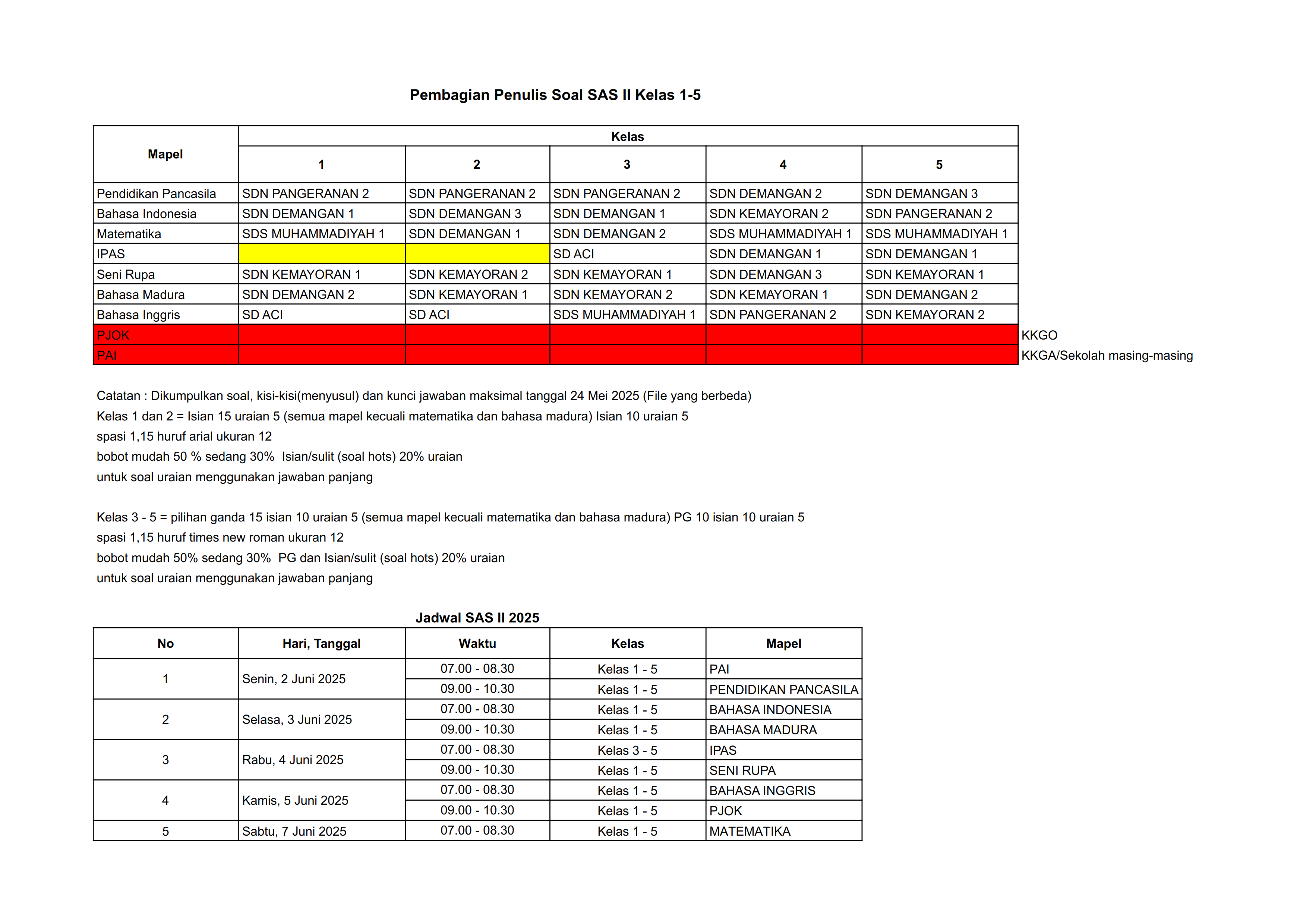 Pembagian soal SAS II Kelas 1-5